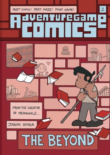 Adventuregame Comics is a new series of interactive graphic novels in the vein of Jason Shiga's hit graphic novel Meanwhile. Readers follow the story from panel to panel, using tubes that connect them, and sometimes the path will split, giving readers the chance to choose how the story unfolds. The Beyond takes place in some sort of afterlife. You don't know much when you begin, save that you're dead and that you've ended up in a room that includes a door, a window, and a table with some books. You need to get out, so you try the door. And then the window. And then you finally turn to the books-and when you open them, you're pulled into the worlds of those pages. Could these fictional worlds hold the key to your escape? Or is there more to this room than first meets the eye?