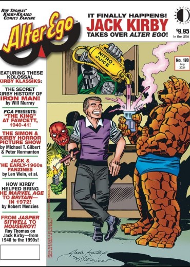 In AE #170, it finally happens! Jack Kirby showcased cover-to-cover in an issue of Alter Ego-behind a never-before-printed Kirby cover! Will Murray on Kirby's crucial contributions to the creation of Iron Man-FCA on his Captain Marvel/Mr. Scarlet work at early-'40s Fawcett-special Kirby sections by Michael T. Gilbert & Peter Normanton-Kirby in 1960s fanzines-Stan Lee's colorful quotes about 'The King'-Roy Thomas on being a Kirby fan (and occasional foil) from 1946 till today-plus other klassic Kirby sightings!