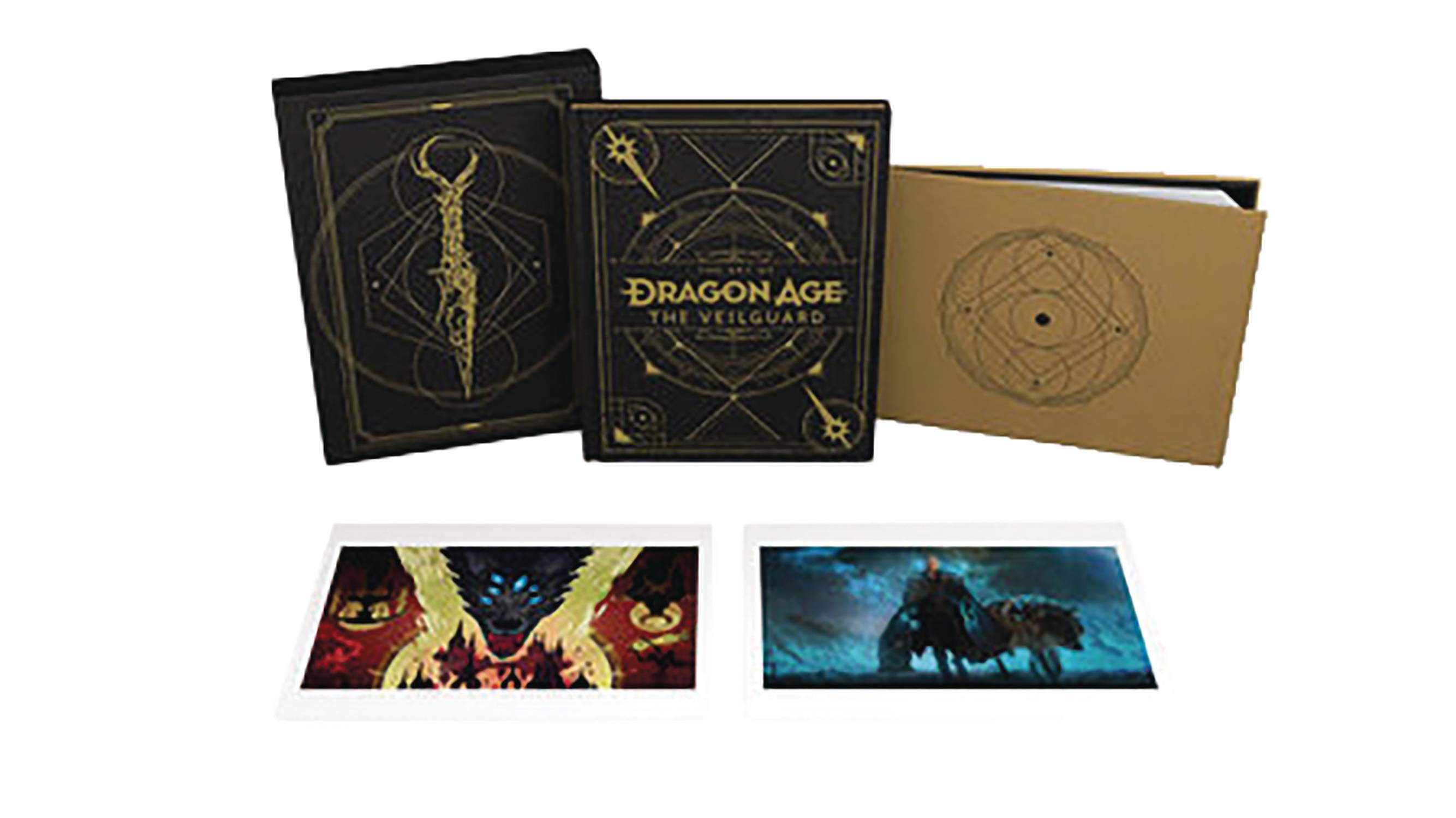 BioWare, the game team behind the fantasy epic Dragon Age: The Veilguard, invites you to take a look behind-the-scenes and experience their creative journey bringing the world of Thedas to life in this luxuriously oversized, deluxe edition art book! See characters as you've never seen them before-from concept to final design, explore the world and varied cultures of Thedas with splash art designs and props from the beautiful locales in the game, and inspect the armory-examining in detail hundreds of weapons and armor! Created in collaboration with the developers at BioWare, this art book showcases the painstaking detail with which Thedas has been lovingly crafted. The deluxe edition features: An elegant foil-stamped slipcase and cover Gilded pages A ribbon book marker Two lithographic art prints housed in a sleek portfolio See the developers' ideas flow from concept to complete design, and experience Dragon Age: The Veilguard from a new perspective!
