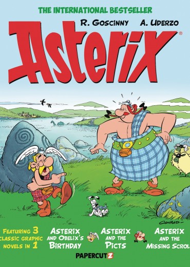 Three newly-translated classic Asterix stories in one deluxe volume! In 'Asterix and Obelix's Birthday,' the creators celebrate the series' 50 year anniversary with a collection of tall tales and taller travel trails for the one and only Asterix, who deserves a great big birthday treat. Then in 'Asterix and the Picts,' Asterix and friends travel to Scotland, where they meet the 'painted men,' also known as the Picts, and they learn that these men do more than paint. Finally in 'Asterix and the Missing Scroll,' Julius Caesar is raging over a missing scroll that may or may not be Caesar's own Comments on the Gallic War. Will all these exciting adventures affect our humble Gaulish friends?