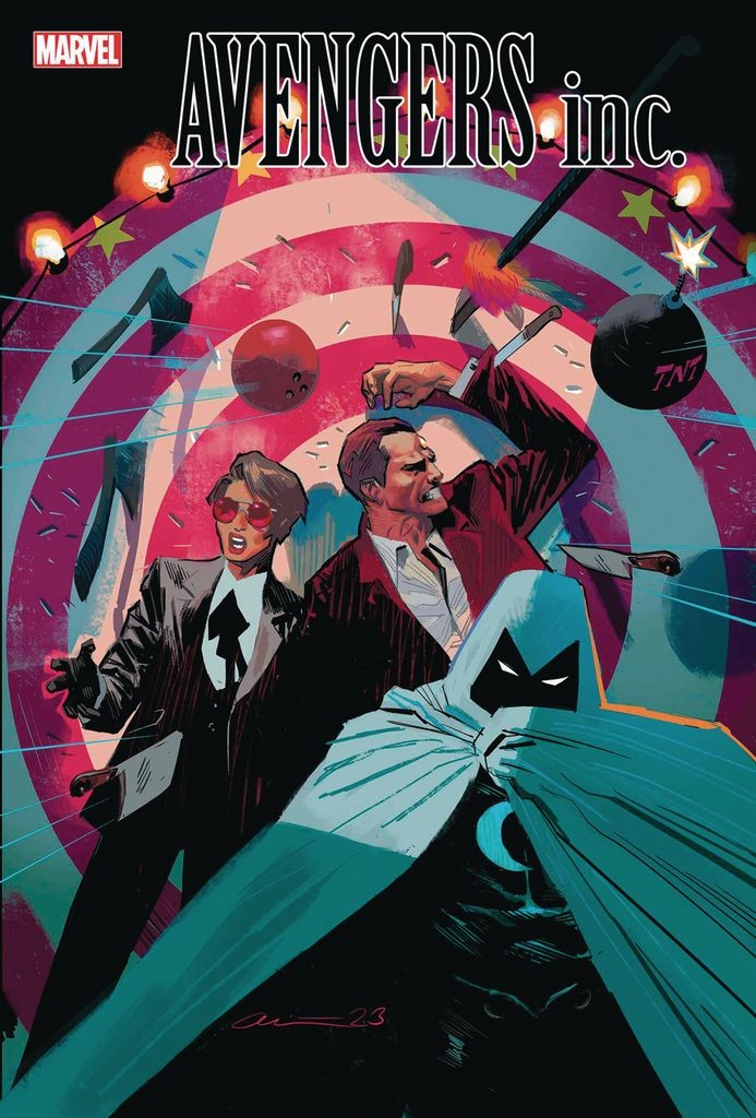 GO FOR THE JUGGLER! Her name is Janet Van Dyne. She's got a file on the Death Throws - a worker's co-operative for themed super villains - that's taller than she is. His name is Victor Shade. Apparently, he's been a member for years. Together, they've got to find out who's picking the Death Throws off one by one...before it's his turn. PLUS, IN HIS VERY LAST GUEST APPEARANCE PRIOR TO HIS DEMISE, MOON KNIGHT! Rated T+