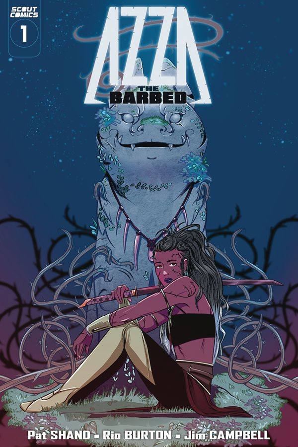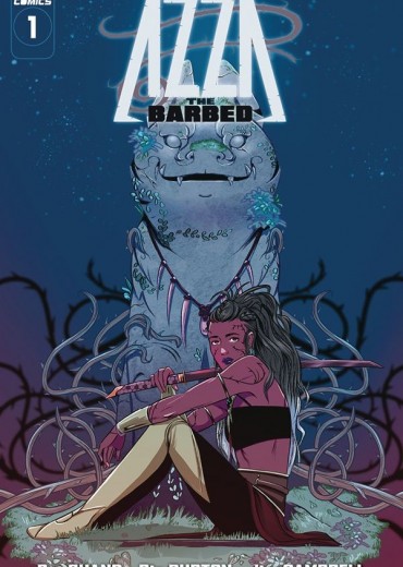 Writer Pat Shand and artist Rio Burton launch a new fantasy epic! Azza was born into a family that, for generations, served in the Obsidian Guard, a military unit of holy warriors. During Azza's Coronation, a magical ceremony that would imbue her with a holy glowing power, something went wrong. Instead of the sacred Obsidian tattoos, she became marred with thorned, black markings and was banished by her people. Now, Azza lives in solitude guarding a great evil... but when that evil escapes and begins to spread its wicked power, Azza must make a choice: save the people that expelled her or allow her home town to fall to evil. With an emotional, comedic, and awe-inspiring story of empowerment, Azza the Barbed blends fantasy, adventure, mythology, horror, and action in this unforgettable new series.
