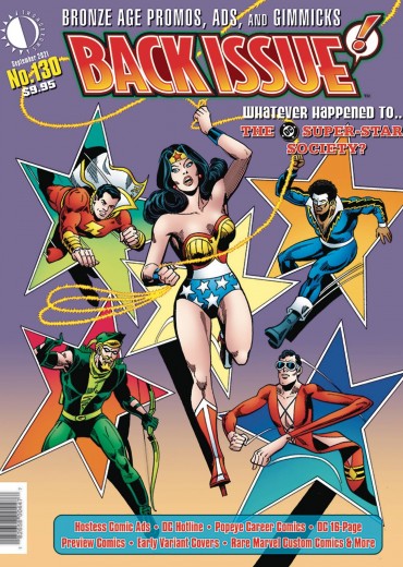 Bronze Age Promos, Ads, and Gimmicks! Who was the mystery writer of those zany Hostess Comic Ads? Plus: the aborted DC Super-Stars Society fan club, DC 16-page Preview Comics, the DC Hotline, Popeye Career Comics, Marvel's little-known Quarterly Reports, and more. Featuring Mike W. Barr, Kurt Busiek, Mike Chen, Glenn Herdling, Paul Kupperberg, Paul Levitz, Kevin Maguire, Dan Mishkin, Tom Morgan, Mark Pacella, Jimmy Palmiotti, Bob Rozakis, Scott Shaw!, Terry Stewart, Roy Thomas, Marv Wolfman, and more. With a previously unpublished 1979 5-Star Super-Hero Spectacular cover by Dick Dillin and Dick Giordano.
