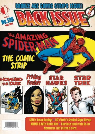 Bronze Age Comics Strips! Spider-Man, Friday Foster, DC's World's Greatest Superheroes starring Superman, Howard the Duck, Richie Rich, Star Hawks, Star Trek, Mike Grell's Tarzan, and more! Plus Charlton's comic strip tie-ins and the Menomonee Falls Gazette. Spotlighting the work of Gene Colan, Archie Goodwin, Gil Kane, Warren Kremer, Stan Lee, Jorge Longarón, John Romita, Roy Thomas, George Tuska, and more. Comic strip montage cover featuring Spider-Man by Romita. Edited by Michael Eury.