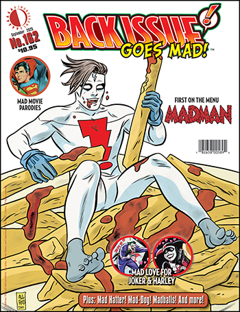 '“BACK ISSUE Goes MAD!” Things get crazy this issue with Madman, Batman: Mad Love, MAD superhero movie parodies, the Mad Hatter, Madballs, and more! Featuring the work of Michael Allred, Bruce Timm, Paul Dini, Gerry Conway, Doug Moench, Mike W. Barr, Jeph Loeb, and others. Madman cover by Michael Allred! Edited by Roger Ash.'