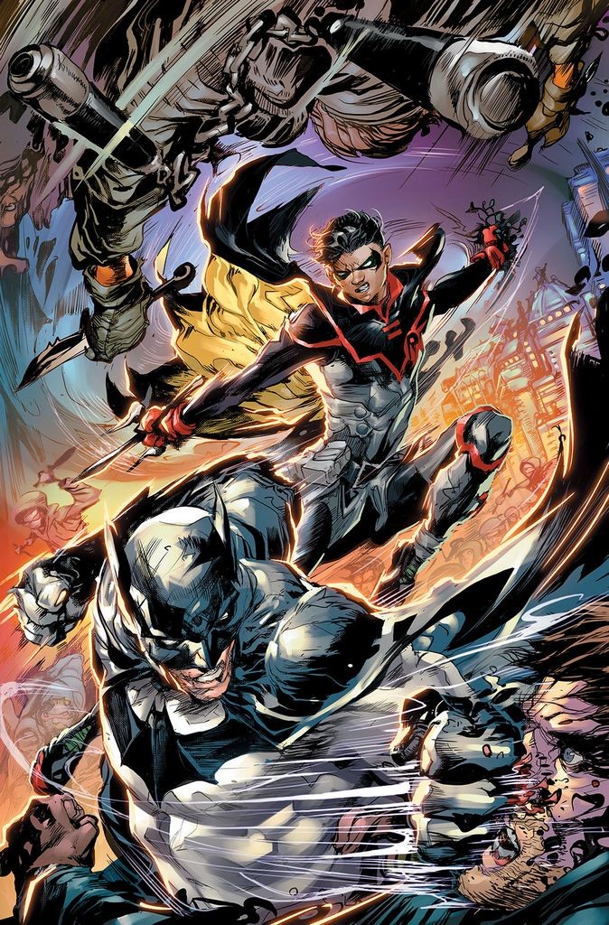 'BATMAN OR MAN-BAT?! Who will be Gotham's true protector? The people of Gotham will decide! While his father fights for his life, Damian now knows Shush's secrets, and it's only created more problems for him as a high school student and as Robin! Can the Dynamic Duo find each other before it's too late?'