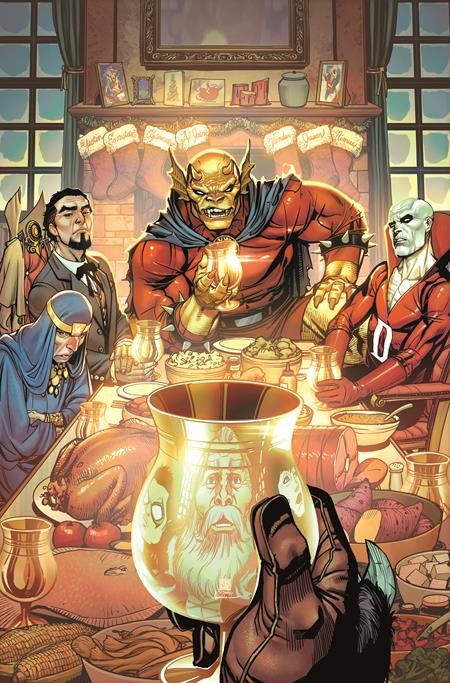 To find the missing Justice League, Klaus, Zatanna, and Robin will brave the greatest terror of the holidays...a Christmas party. You are cordially invited to a winter solstice gathering of the strange and oft-deadly magical community at the Georgetown mansion of Baron Winters, one guest limit. After a performance by sirens and banshees, we will gather in the Baron's study, where noted demonologist Jason Blood will be giving a reading on the origins of the being called the Silent Knight!
