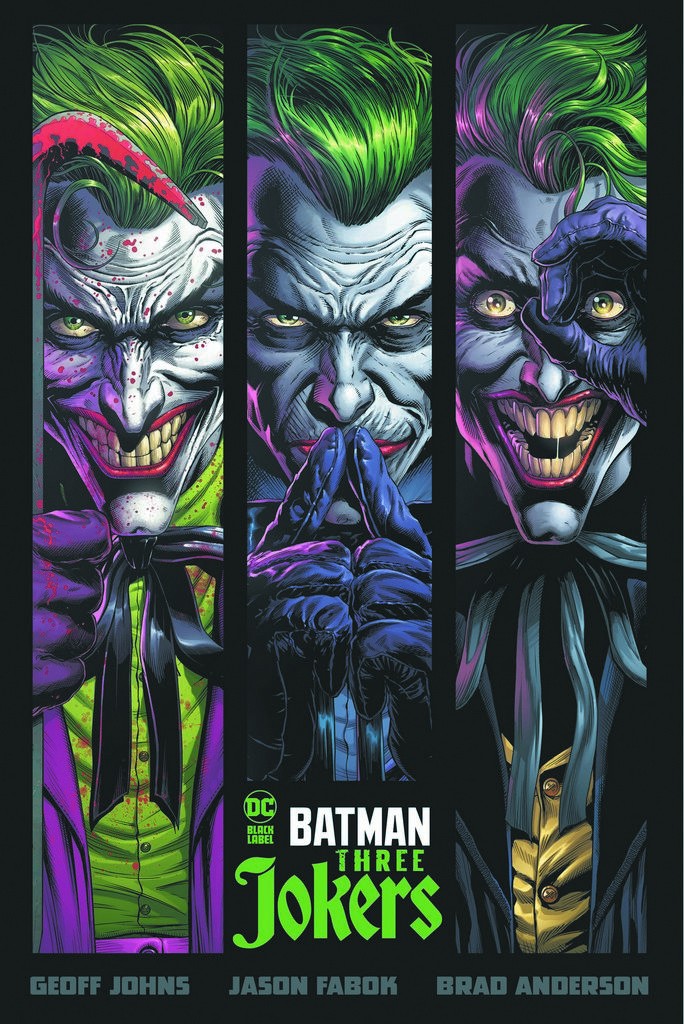 'Thirty years after Batman: The Killing Joke changed comics forever, superstars Geoff Johns and Jason Fabok reexamine the myth of who, or what, is The Joker! Batman, Batgirl, and Red Hood--all past victims of The Joker--work together to solve the mystery of why not one but three different Jokers (each seemingly the genuine article) are terrorizing Gotham! Collects BATMAN: THREE JOKERS #1-3.'