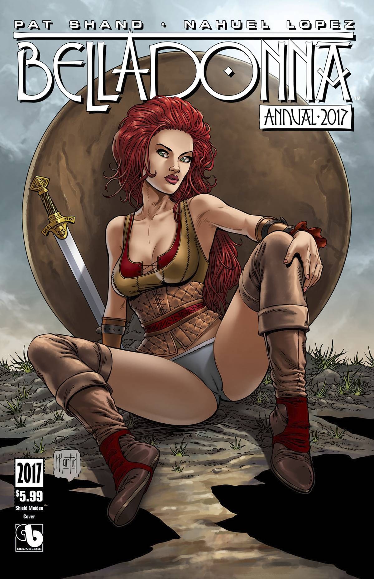 The redhead raider and her shield maidens are back! This Annual sets the stage for the new series starting this Fall with two all-new stories. Belladonna and her warriors are lured into a trap by the Bone Queen while Gypsy has to escape a hostile pack of werewolves! Available with all-star covers including a Regular Cover by series artist Nahuel Lopez, Wraparound by Raulo Caceres, Shield Maiden by Matt Martin, Sultry Slayer and Killer Body by Renato Camilo and a painted Viking Vixen from Jonatas! A special subset of Raiders covers are available by Christian Zanier, each limited to just 350 copies! Including the Raiders, Nightfall, Topless, Nude, Adult and Adult Extreme covers on this special run series of images. For the erotic art collectors, there is a special Gypsy Wraparound Nude by Paulo Siquiera that has no clothed edition. We also offer a Century Nude (limited to 100 copies) featuring original pencils by Renato Camilo, as well as the Nude by Lopez, Wraparound Nude by Caceres, Shield Maiden Nude and Adult by Matt Martin, Sultry Slayer Nude and Killer Body Nude by Renato Camilo and a painted Viking Vixen from Jonatas (which is a totally different image from the clothed edition). To see the uncensored nude and adult covers, please visit www.boundlesscomics.com.