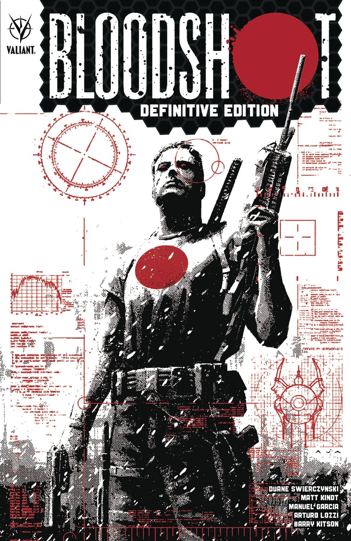 Before Vin Diesel's BLOODSHOT hits the silver screen in 2020, experience the hit series that debuted Valiant's nanite-enhanced commando with this essential standalone volume! From acclaimed writer Duane Swierczynski (Birds of Prey) and all-star artists Manuel Garcia (Black Widow), Barry Kitson (The Amazing Spider-Man), Arturo Lozzi (Immortal Weapons), and Matthew Clark (The Adventures of Superman), the BLOODSHOT DEFINITIVE EDITION trade paperback collection re-presents the blockbuster first year of the breakout Valiant series behind the upcoming major motion picture from Sony! Collecting BLOODSHOT #0-13.