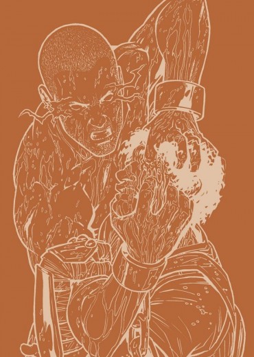 A special pen & ink edition of BRZRKR: Fallen Empire by Mattson Tomlin and Rebekah Isaacs, in a premium format with additional commentary by the artist! The lone survivor of Olos, a long-dead empire that once thrived, tells a tale of B.'s distant past, and the death and cataclysm he brought forth. But what else did B. find that could have driven him to such violence? The heart is as much a weapon as any in B.'s arsenal…