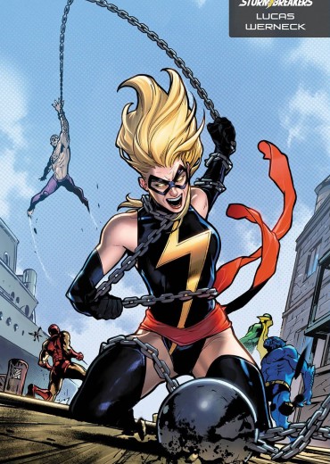 WE ALL FALL DOWN! Captain Marvel meets the challenge of a lifetime. When a few gloom and doom teenagers tell the Captain that heroics are a waste of energy on a dying planet, she sets out to prove them wrong - and gets more than she bargained for when they're all teleported to hostile alien territory! As Spider-Woman seeks help from some of Earth's greatest heroes, explosive villain NITRO and his spooky alien pal NADA make their move! Rated T+
