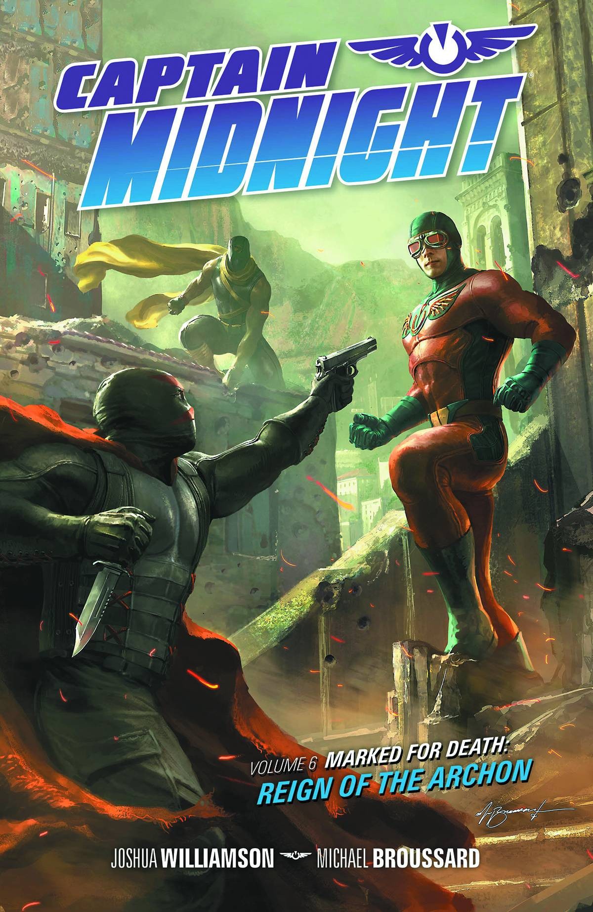 Captain Midnight faces the greatest threat this world has ever known . . . the Archon. But who is he, and what does he want? Midnight must rely on the unlikeliest of allies to acquire the knowledge necessary to fight this ageless malefactor. The time-displaced genius will need to reach down deep to confront this new world horror and become the greatest hero the world has ever seen. Collects Captain Midnight #20-#24.