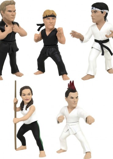 A Diamond Select Toys release! Strike first! Strike hard! No mercy! The stars of Cobra Kai just got super-cute, in the newest assortment of D-Formz! Johnny, Daniel, Kreese, Samantha and Hawk each stand approximately 3 inches tall on a flat disc base, striking poses straight out the TV show! Each figure is blind boxed, with 12 boxes in a counter display. Designed by Barry Bradfield, sculpted by Juan Pitluk!