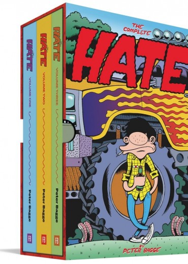 An archival collection of one of the bestselling alternative comic book series - arguably, the Great American Grunge novel - complete for the first time. The Complete Hate is a three-volume set that includes the original 1990-1998 30-issue run, the nine subsequent Hate Annuals, and tons of other Hate-related comics, illustrations, and ephemera created for books, magazines, comics, toys, and other merchandise. Bagge combined his cartoony drawing style with uncomfortably real Gen X characters, and the comic books resonated with readers. Book One (Hate 1-15), focuses on young Buddy Bradley's travails in early 1990s Seattle. Book Two focuses on Buddy and his girlfriend Lisa Leavenworth's move back to Buddy's native New Jersey (and a switch from black-and-white to full color). Book Three features the final arc of Bagge's magnum opus, as Buddy and Lisa become parents (and buy a garbage dump). Each volume, along with the slipcase, contains new covers, endpapers, title pages, and other surprises by Bagge.