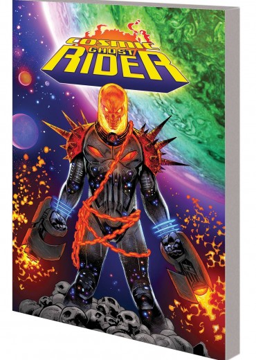 You knew him as the Punisher. Then Frank Castle made a deal with the devil that made him the Ghost Rider. A deal with Galactus made him cosmic. And a deal with Thanos made him...dead?! Not to worry, Castle doesn't die easy. He's back - and he's got a plan to make the universe a better place! It all starts with an idea so simple he can't believe no one's ever done it before. But as with all things worth doing, it's not going to be easy. Castle takes on space sharks, faces down the future Guardians of the Galaxy and runs into Galactus during a bar fight! And don't forget...baby Thanos?! It's Frank...er...the Punish...um...Cosmic Ghost Rider in the craziest caper you've ever seen! Collecting COSMIC GHOST RIDER #1-5. Parental Advisory