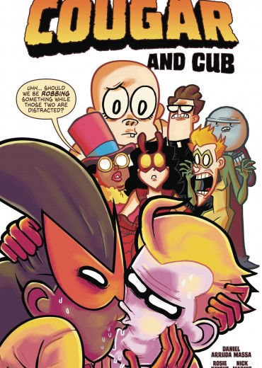 The courageous Cougar is Megaville's friskiest superhero, tossing crooks left and right with her loyal sidekick, the cunning Cub. But when a slow night on the prowl leads to a one night stand, their perfect partnership is plunged into peril! Can our delicious duo mend their fractured friendship and defeat Megaville's roster of outrageous supervillains?!? Plus, visit Cougar and Cub in their natural habitat as we take you on a trip through comic book history with five frenzied flashbacks!