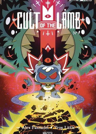 Heretical creators Alex Paknadel (Detective Comics) and Troy Little (Rick and Morty vs. Cthulhu) write the final chapter of Cult of the Lamb's FIRST VERSE-and lay the seeds for new chapters yet to be told . . . Lamb returns to the Darkwood, determined to finally defeat the nefarious Bishop Leshy at any cost. Back at the cult, Nana struggles with the instruction to sacrifice a follower in order to grant Lamb the power to push through their boss fight, but ultimately realizes what's best for the Lamb is best for the cult, and a difficult choice is made . . .