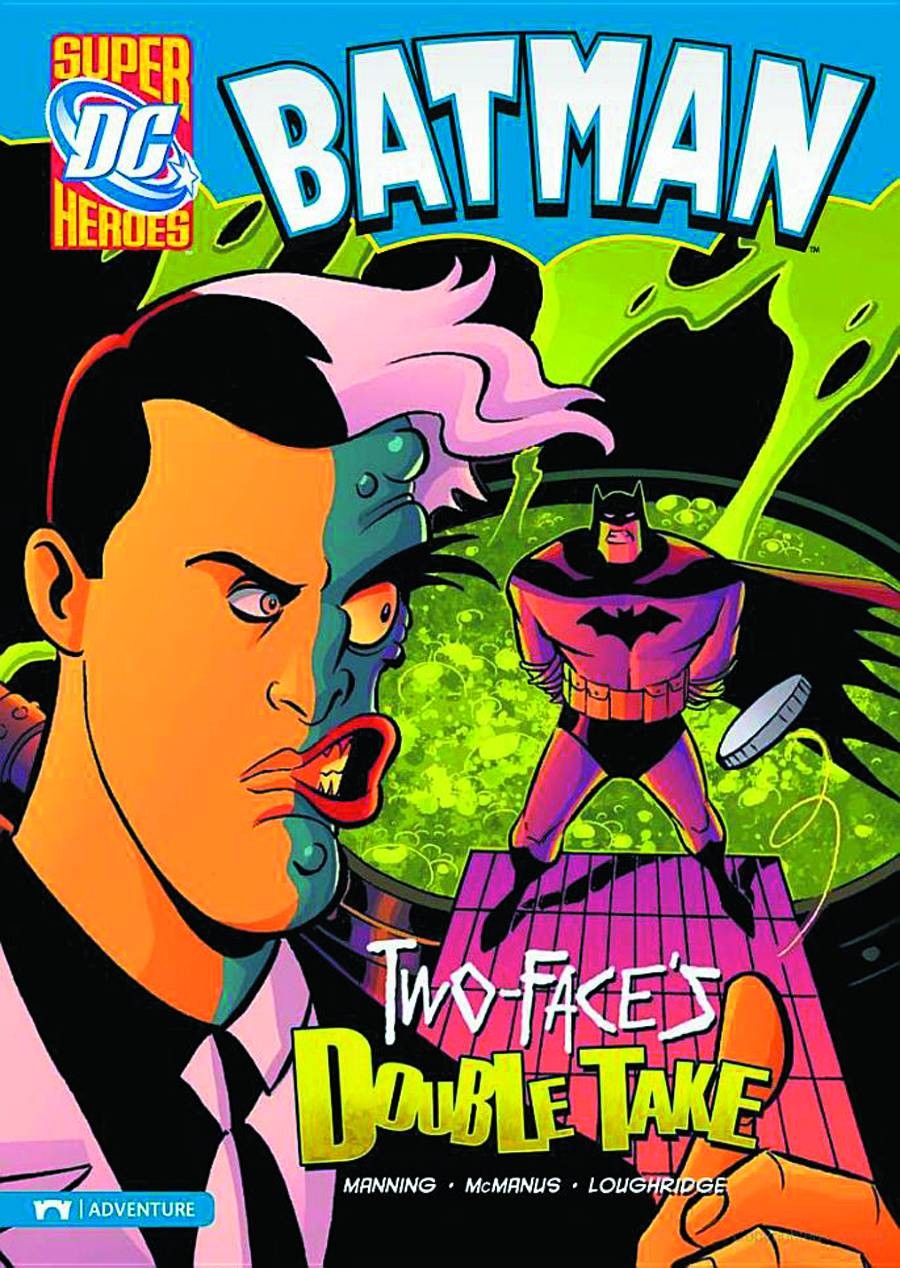 At a charity ball, Bruce Wayne notices a strange coincidence - all of the waiters are twins. Then suddenly, the terrible Two-Face crashes the festivities! He has partnered with another super-villain to rob every bank in Gotham, but first this crazy criminal wants to take down the city's top moneymaker. Before Bruce can change into his secret identity, Batman, Two-Face captures the billionaire and leads him toward the factory that birthed his criminal alter ego. Without help from his own partners, the Dark Knight could be in double trouble.