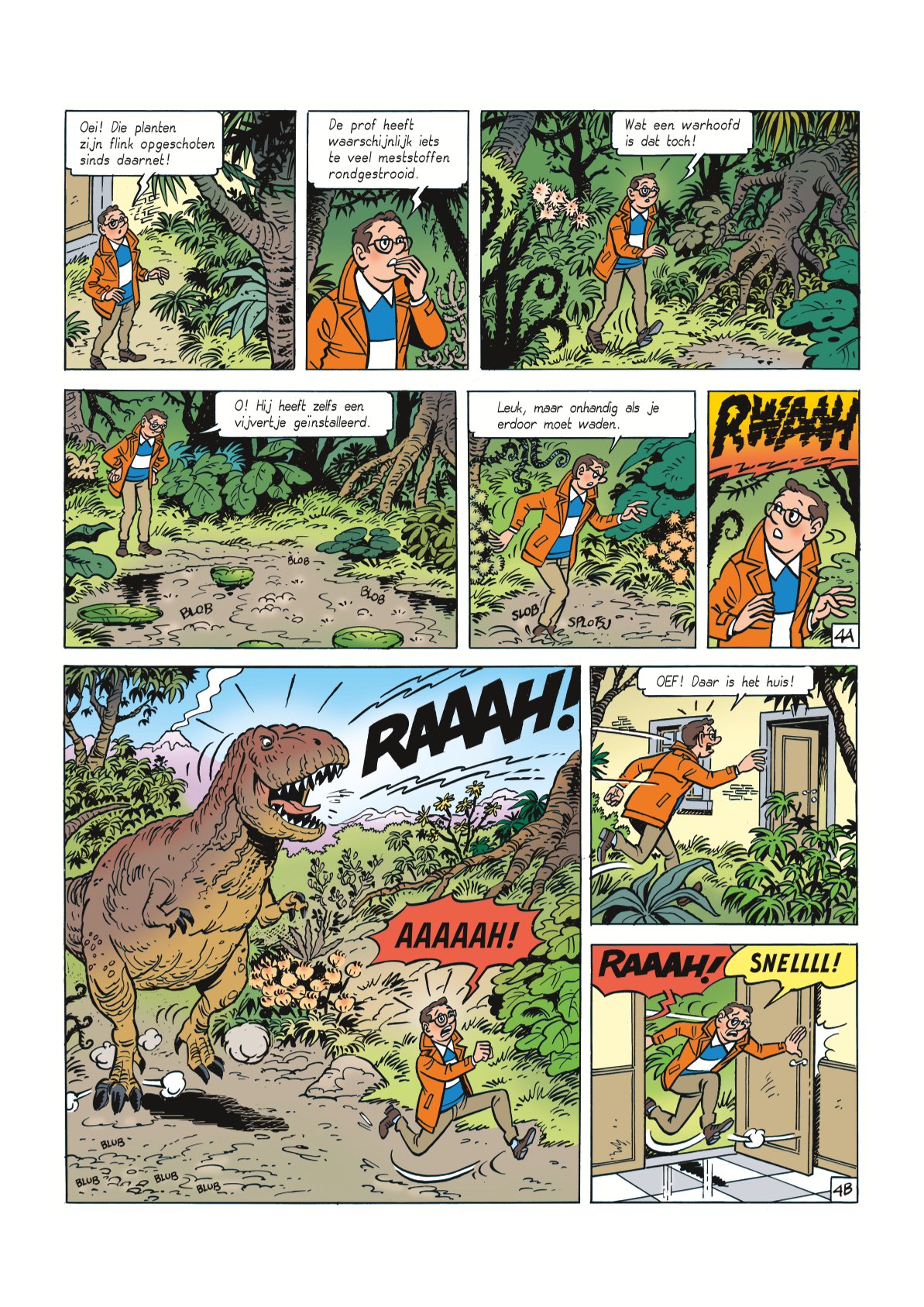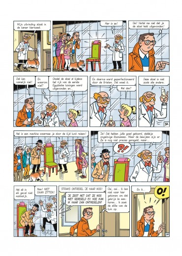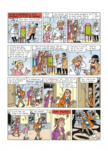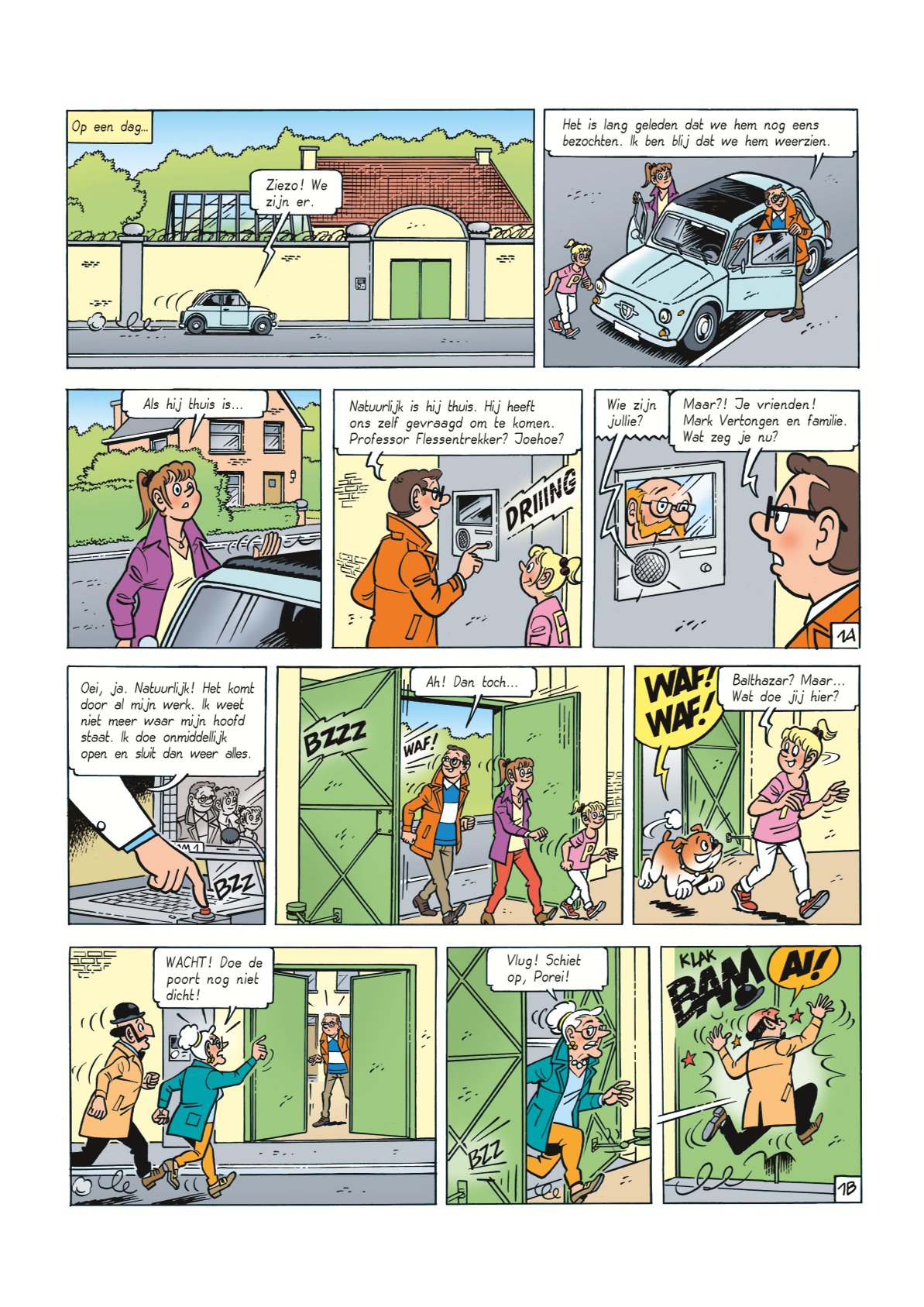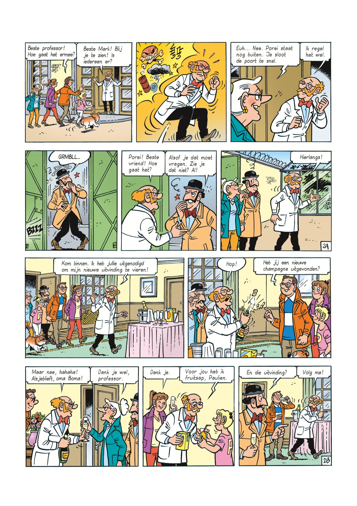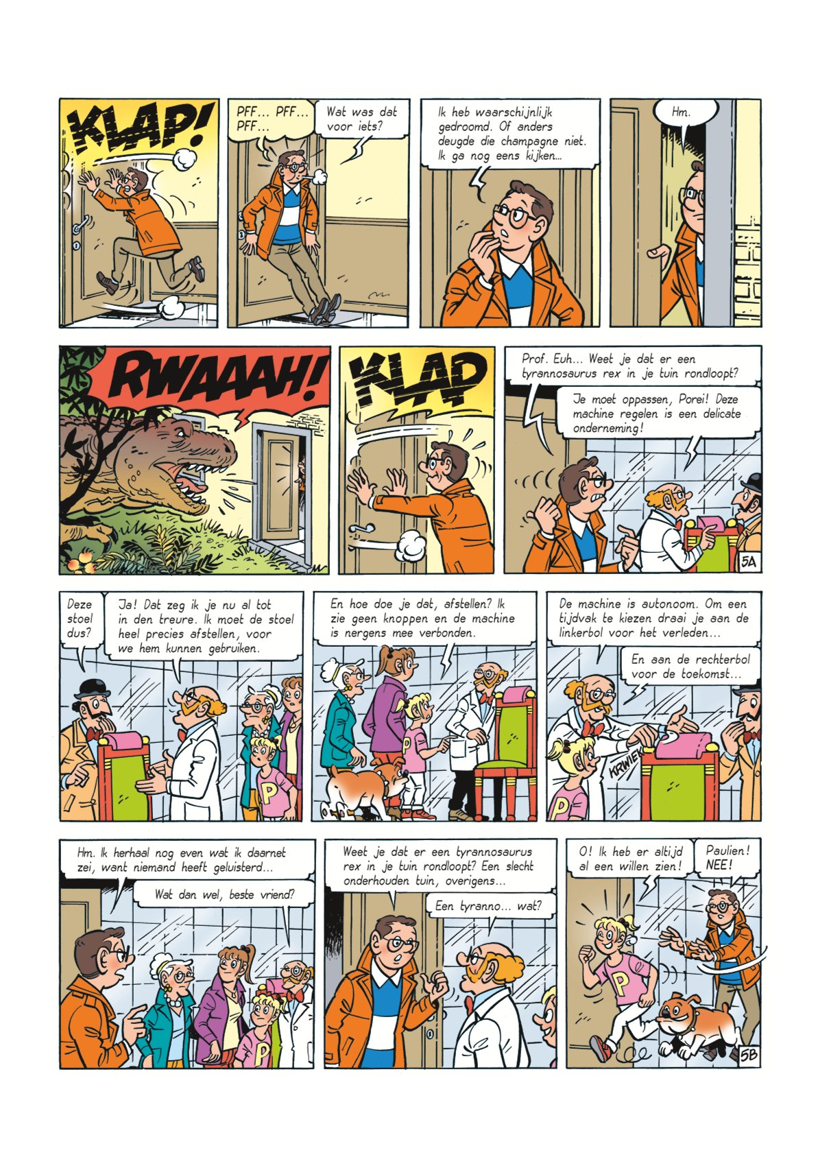 Mark Vertongen en zijn familie gaan op bezoek bij professor Flessentrekker. Ook oma Boma en inspecteur Porei verschijnen ten tonele. Ze zijn er allemaal op uitnodiging van de professor, die hen zijn nieuwste uitvinding wil presenteren: een stoel waarmee je in de tijd kunt reizen. Maar er is van alles mis met die stoel. De prof slaagt er maar niet in om hem goed af te stellen. Mark, die de lange uitleg moe wordt, maakt een wandeling in de tuin en stelt tot zijn verbazing vast dat hij in het mesozoïcum is beland! Hij kan maar net ontsnappen aan de aanval van een razende tyrannosaurus rex. Eenmaal weer binnen hoort hij hoe Porei een uitbrander krijgt van professor Flessentrekker. Het was de inspecteur die op de stoel is gaan zitten, die daardoor ontregeld is geraakt. Buiten in het park ontdekt Paulien dat futuristische robots een oorlog uitvechten met dodelijke laserstralen. Wat is er allemaal aan de hand in het lab van professor Flessentrekker? De tijd zelf lijkt helemaal in de war.