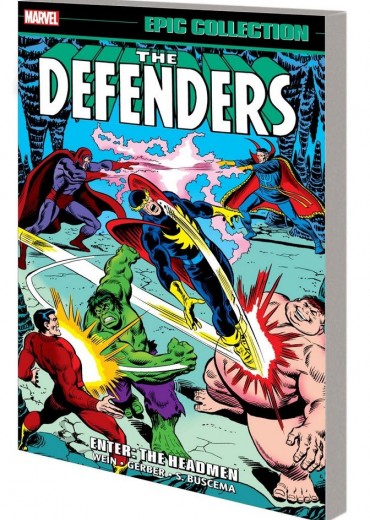 The Defenders, comicdom's No. 1 non-team, are back - and things are about to get weird in all the best ways! As we begin, the Defenders confront Nebulon and the other-dimensional Squadron Sinister. It's an encounter that will bring Nighthawk into the fold and change the team forever! Magneto and his Ultimate Mutant strike, the Wrecking Crew debuts, Luke Cage and Daredevil join up, and Valkyrie continues the search for answers to her fractured identity! Then, Steve Gerber takes the writing reins, injecting the series with knowing absurdity and cutting social commentary in the form of the bizarre Headmen and the bigoted Sons of the Serpent! Gerber crafted challenging stories that set the tone for the Defenders going forward - and define them even today! Collecting DEFENDERS (1972) #12-25, GIANT-SIZE DEFENDERS #1-4 and MARVEL TWO-IN-ONE (1974) #6-7 - plus material from MYSTERY TALES #21, WORLD OF FANTASY #11 and TALES OF SUSPENSE (1959) #9. Rated T