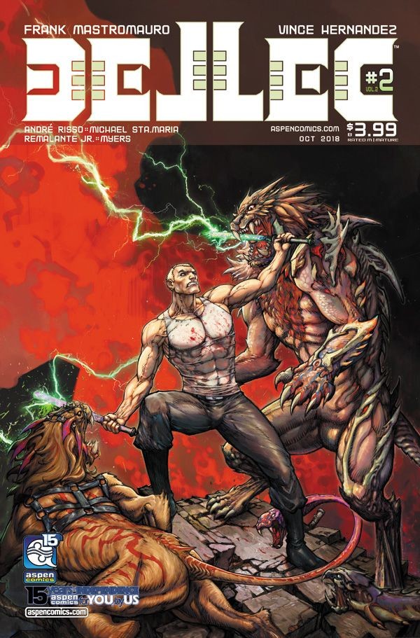 Aspen's hardest hitting series, DELLEC returns for its long-awaited second volume! Dellec attempts to come to grips with the realization that time did not wait for him during his prolonged absence. However, an even greater problem lies ahead of him-surviving his encounter with The Hands of God's deadly chimera creatures! From the minds of creators Frank Mastromauro (Shrugged, Awaken Skies) and Vince Hernandez (Michael Turner's Fathom: Kiani, Charismagic), along with art by Andre Risso, Michael Ste Maria and John Starr, this newest volume of DELLEC is gonna redefine your definition of the human spirit!