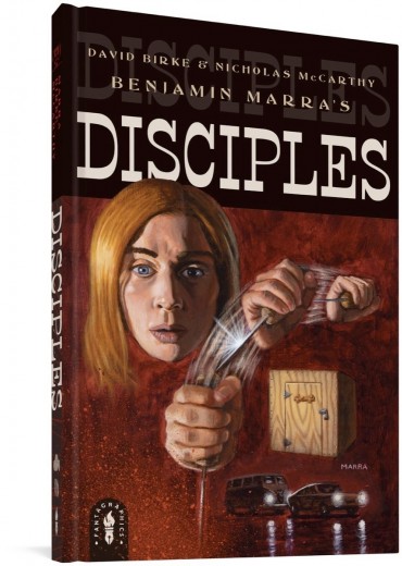 Marin County, 1978. In this graphic novel, Clara and Wendy are two teens getting high one night alone at home. Before the night ends, they've disappeared - until five months later, when Clara is found, disheveled, in Death Valley National Park. From Clara's mysterious reappearance in Death Valley, Disciples cuts to the present day, where stories of 'The California Cult' and its enigmatic - and never-caught - leader, Billy Joe, are as much a part of the popular culture as the Manson Family. Clara, the lone survivor of the cult, has adopted a new identity to protect her and her daughter, Wren. And she mostly does, until one night when the past and present horrifically collide. Disciples is a seamless collaboration between cartoonist Ben Marra and filmmakers David Birke and Nicholas McCarthy. Birke and McCarthy's script celebrates and reinvents a cult film ethos. It combines the best of 1970s era eerie-thriller-terror movies in a fresh and revelatory way, similar to how Marra has continued/reinvented the work of Abel Ferrara and George Cosmatos in graphic novels like Night Business.