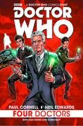 The universe-shattering crossover... the laws of time said should never happen! Under attack by the Reapers, antibodies of the universe! A photo that should never have been taken, that spells doom for reality! A breathless chase through three TARDISes! A hidden enemy lurking outside of known time! Three Doctors, three companions... and a whole host of heated discussions, flailing arms, and perfectly-phrased insults between immortal Time Lords who really should know better! Don't miss this unforgettable first meeting between the tenth, eleventh and twelfth Doctors, with guest cameos from past incarnations, and an astonishing mystery at its heart! Written by Paul Cornell, Hugo Award-winning author of Doctor Who episodes 'Father's Day' and 'Human Nature/The Family of Blood,' and drawn by Neil Edwards, this crossover adventure will take you from the Time War to 1920s Paris, and on to the ends of the universe! This one has it all!