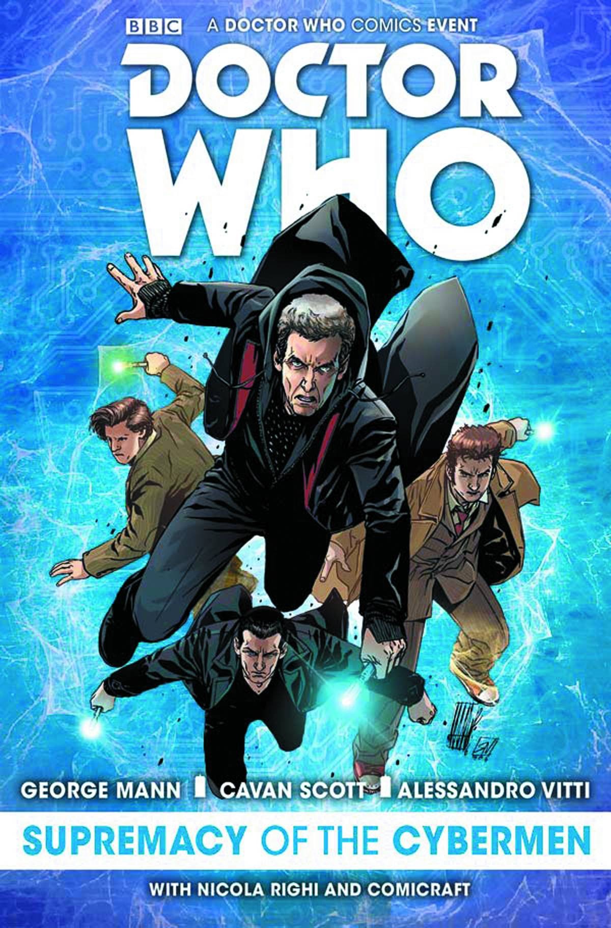 For the Cybermen's 50th-anniversary� YOU WILL BE DELETED! Exiled from Gallifrey at the very end of Time, Rassilon, fallen leader of the Time Lords, has been captured by the last of the Cybermen. Now the Cybermen have access to time travel. With it, every defeat is now a victory. Every foe is now dead - or Cyberised. Four Doctors will battle the Cybermen on multiple fronts through space and time, with reality itself at stake! Collecting the Doctor Who 2016 event, Doctor Who: Supremacy of the Cybermen #1-5.