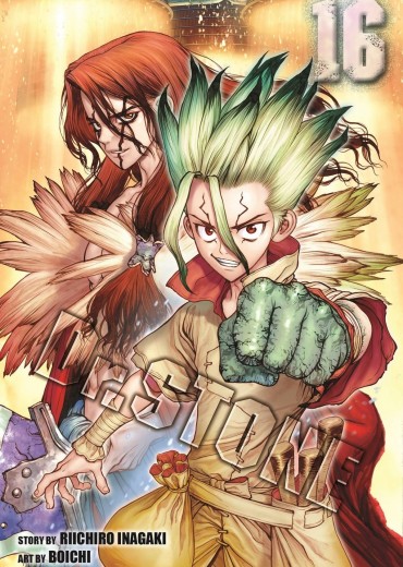 The battle between the Kingdom of Science and Petrification Kingdom is down to a mano-a-mano match between Senku and Ibara! With his petrified friends' spirits supporting him, can Senku finally get his hands on the all-powerful petrification weapon?! Later, a shocking revelation about the mysterious 'Why-Man' leads the Kingdom of Science on a new adventure! For teen audiences.