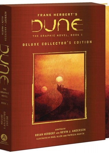 Dune, Frank Herbert's epic science-fiction masterpiece set in the far future amidst a sprawling feudal interstellar society, tells the story of Paul Atreides as he and his family accept control of the desert planet Arrakis. Brian Herbert and Kevin J. Anderson's adaptation retains the integrity of the original novel, and Raúl Allén and Patricia Martín's magnificent illustrations, along with cover art by Bill Sienkiewicz, bring the book to life for a new generation of readers. This deluxe collector's edition boasts an increased trim size of 7 1/2' x 11 1/4', printed on high-quality matte art paper in a faux-cloth slipcase with gold foil stamping tip-on cover.