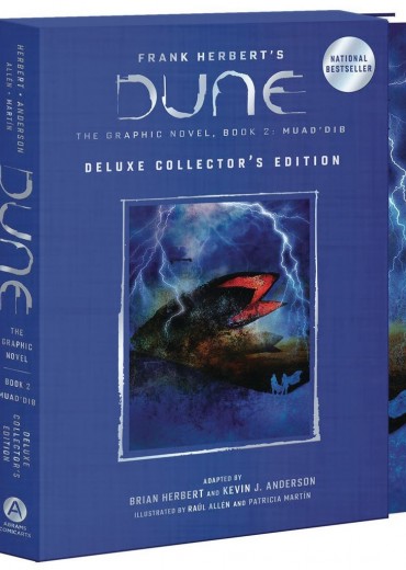 In DUNE: The Graphic Novel, Book 2: Muad'Dib, the second of three volumes adapting Frank Herbert's Dune, young Paul Atreides and his mother, the lady Jessica, find themselves stranded in the deep desert of Arrakis. Betrayed by one of their own and destroyed by their greatest enemy, Paul and Jessica must find the mysterious Fremen, or perish. DUNE: The Graphic Novel, Book 2: Muad'Dib is now available in a deluxe collector's edition with an increased trim size of 7 1/2' x 11 1/4', printed on high-quality matte art paper, and packaged in a faux-cloth slipcase with foil stamping and tip-on cover.