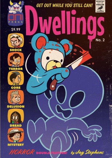 72 pages of terror returns in another triple-sized, bi-monthly dose of the series that has the comic industry screaming: Dwellings! Emmy Award-winning, Eisner-Award-nominated cartoonist and animator Jay Stephens (Secret Saturdays, Jetcat Clubhouse) welcomes you back to Elwich-the small town where the secrets run deep, the quiet streets harbor murderous intent, and even the spirits are prone to fits of jealous rage! In this issue: Two must-read tales of supernatural psychosis and paranormal paranoia! First: Don't bite the hand that feeds you in 'Quiet, Suki,' especially if that hand is a talking puppet! Then: Investigative reporting meets infrasound in 'Sound Mind,' as the ghosts of the past come roaring forth.