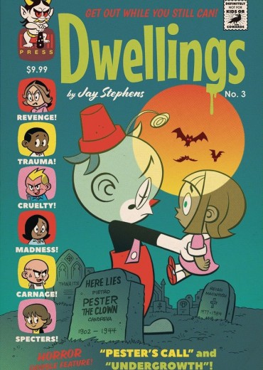The sold-out horror hit of 2023 returns to the scene of the crime for one FINAL scare! Welcome back to Elwich-where murderous and horrifying secrets sleep just below the pristine surface, slithering in the shadows of this otherwise quiet and idyllic small town. The cute-creepy mashup from Emmy Awardwinning, Eisner Award-nominated cartoonist and animator Jay Stephens (Secret Saturdays, Jetcat Clubhouse) returns from the grave for two more tales of small-town horror. Readers with coulrophobia beware: in this issue, creepy clowns are quite the scare! See for yourself the shock, terror, and fun that is . . . Dwellings!