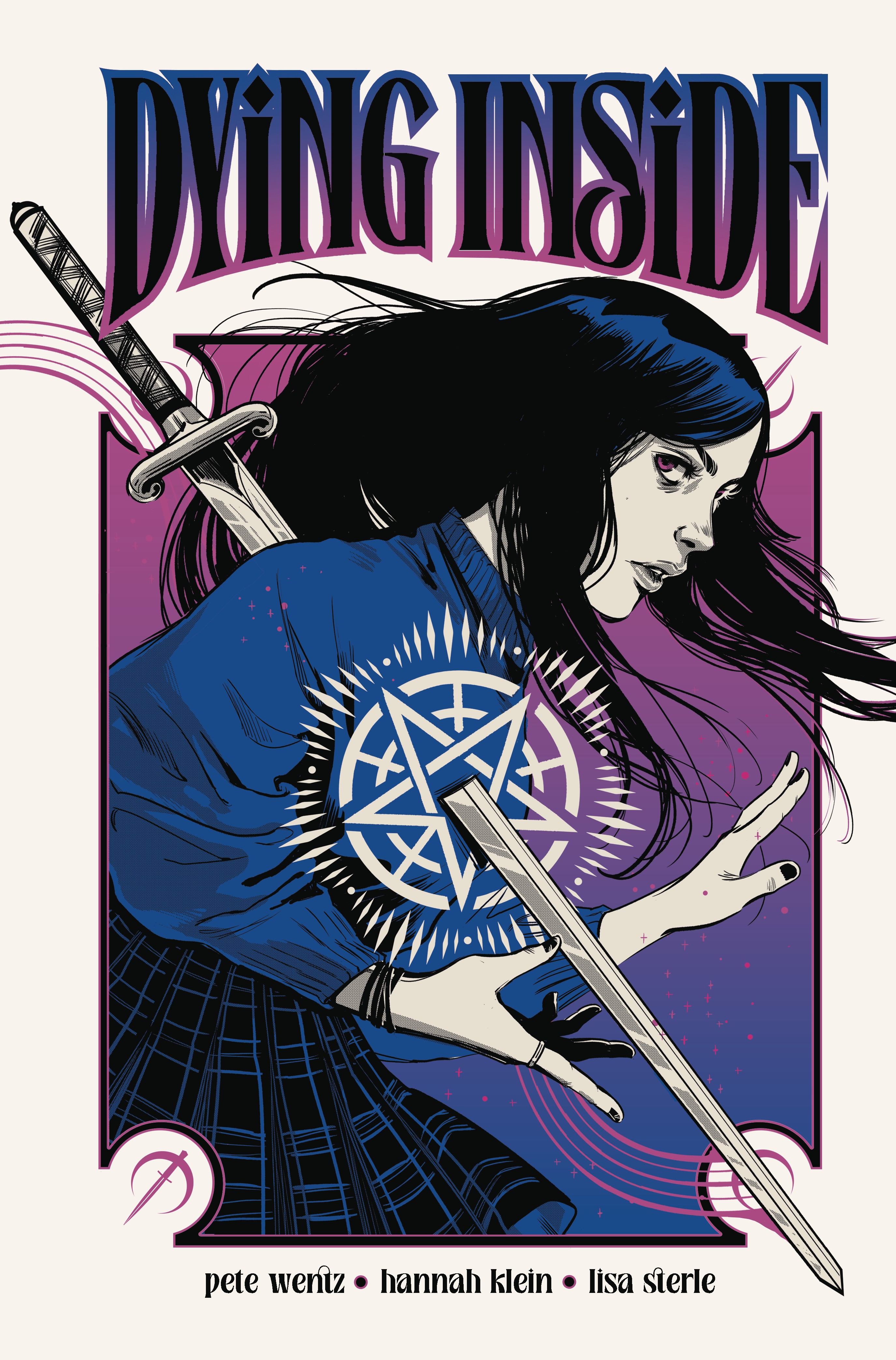 From Hannah Klein (Everything's Fine), Fall Out Boy's Pete Wentz, and Lisa Sterle (The Modern Witch Tarot) comes the graphic novel about a chronically depressed girl who's tired of fighting for her... death. DYING INSIDE is a musically immersive experience, featuring original lyrics and poetry from Pete Wentz, an integrated playlist, and never-before-heard music from Daisy Grenade. Today is Ash's big finale. And by finale, she means exiting the stage permanently. Ash is a sixteen-year-old girl with more angst than Ian Curtis and Elliott Smith combined (her two idols). She's apathetic and therefore believes death is the easiest route to relief. But nothing is more embarrassing than a lame death. Unfortunately, her meticulous plans are ruined when the beautiful knife she buys off a webstore turns out to be charmed with a protection spell. Now, Ash has to track down the witch who transformed her clocking out attempt into the worst gift imaginable: immortality. Turns out, the witch responsible is another sixteen-year-old-girl named (get this) Liv. The two vow to undo the charm together and fight for Ash's death...even as things get increasingly entangled with a strange new antidepressant called Somnia and her mom's gross boyfriend, Greg.