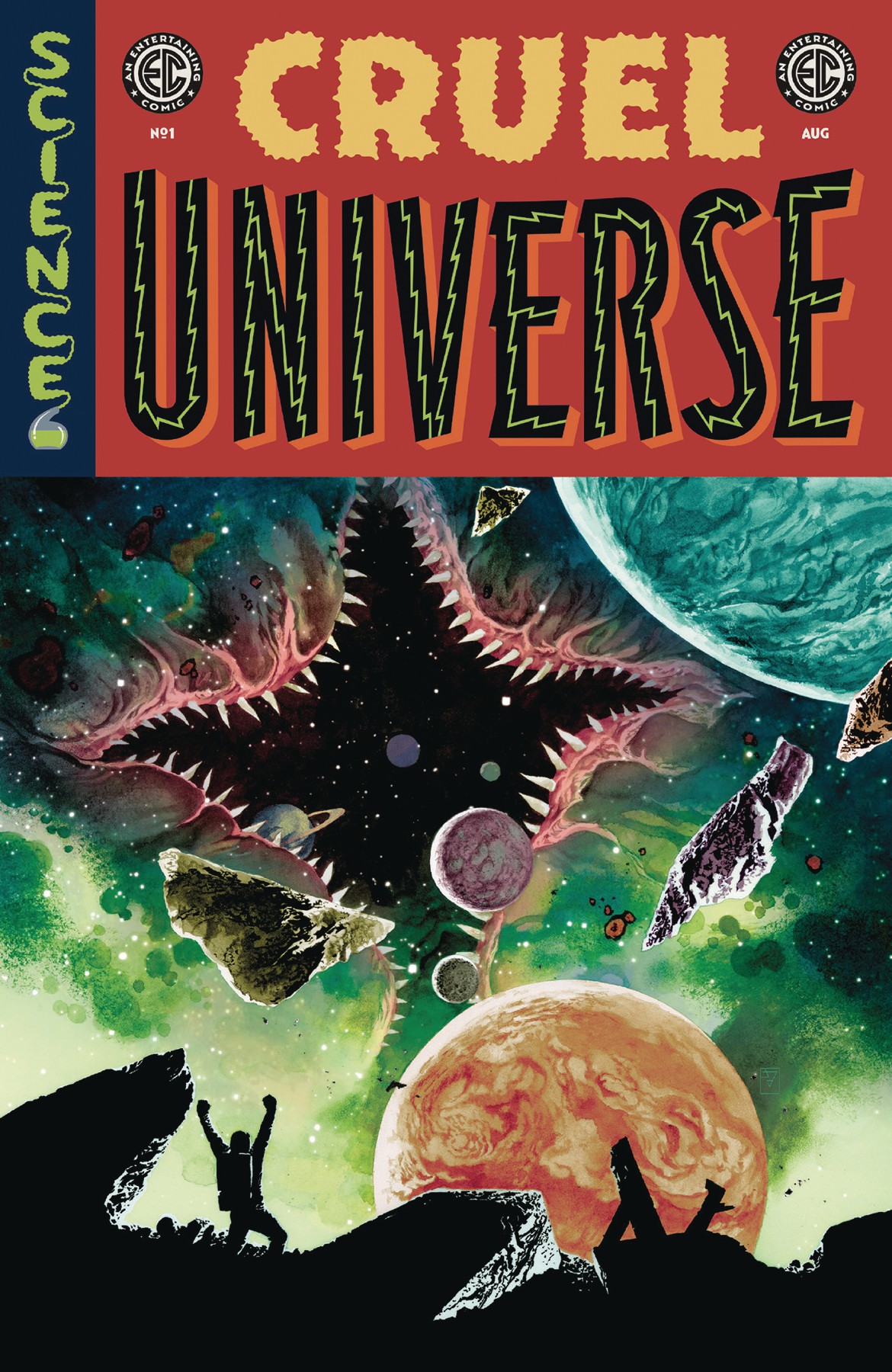 Compelled to OBLIVION, driven to ENTROPY, all life in our cosmos can only end in one place: COMPLETE ANNIHILATION! For the first time in 70 years, the limitless fury of EC Comics rages back to life to shred the very fabric of the universe itself-and wrench bizarre tales of time and space into our dimensional plane! Our guides across this double-sized, 40-page introduction to a cosmic maelstrom of strange extraterrestrial entities, malevolent scientists, and terrifying technological catastrophes? Learn to fear the void with the irradiated imaginations of Hugo Award nominee Corinna Bechko (Invisible Republic), rising star Chris Condon (That Texas Blood), Eisner Award nominee Matt Kindt (BRZRKR, Mind MGMT), and Edgar Award winner Ben H. Winters (The Last Policeman) as they collide with the wondrously destructive visions of artists Jonathan Case (Green River Killer), Kano (Immortal Iron Fist), Artyom Topilin (I Hate This Place), and Caitlin Yarsky (Black Hammer: Reborn)! The unpredictable return of EC Comics continues here with the quantum comics event of the millennium! Galaxies will collapse. Space-time will be distorted. And your very will to exist, too, shall be broken . . . Just remember: it's all in the name of SCIENCE!