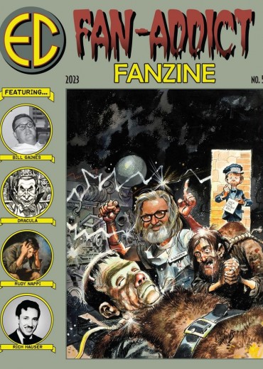 This profusely illustrated, 112-page, full-color issue is absolutely chock full of EC lore and rare artwork by EC artists! Front and back covers by Jack Davis. Featuring Frazetta's original hand-colored silverprint of his legendary Weird Science-Fantasy 29 cover, an unpublished interview with EC Picto-Fiction cover artist/pulp fiction illustrator Rudy Nappi, a 1978 visit to Gaines's legendary EC art vault, a feature on EC's Leroy lettering team Jim and Margaret Wroten, EC Artist Christmas Cards, Jack Davis and Playboy, a feature on the Davis-illustrated Dracula's Greatest Hits album, an exhaustive listing of all the various versions of EC's Picture Stories from the Bible series, articles on the creation of-and history behind-the seminal 1960s EC fanzines Squa Tront and Spa Fon, and much more. This issue is absolutely essential reading for all EC Fan-Addicts!