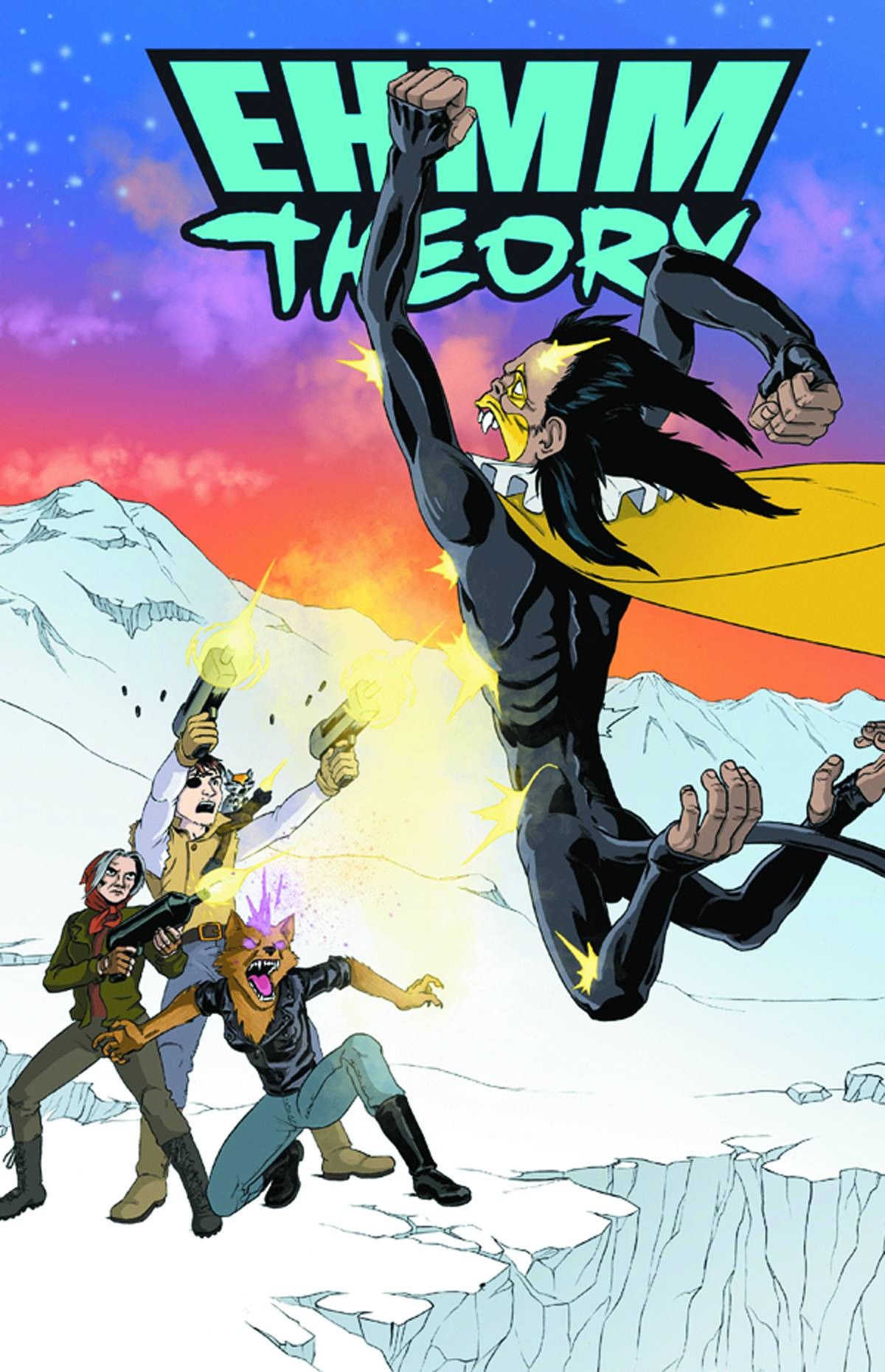 What do you get when you cross a bloodthirsty, universe-traveling carnival monkey with a time-displaced, foul-mouthed kitten & his best friend? The epic second volume of Ehmm Theory! Gabriel Ehmm takes on incredible new freaked-up foes with the help of his talking cat Mr. Whispers and the telekinetic werewoman named Mindwolf in the brain-melting tale that has folks saying 'Oh my macaroni nuts, this is a wild treat!' Collects Ehmm Theory: Everything and Small Doses #1-4.