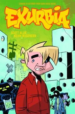 Scott Allie (W) and Kevin McGovern (A) On sale Oct 7 b&w, 112 pages $9.95 TPB, 6' x 9' Gage Wallace's day seemingly couldn't get any worse. After breaking up with his girlfriend, he finds himself framed for blowing up his apartment building-the latest in a string of deadly bombings in this doomed suburb. After the neighboring Fat City fell into the river during an earthquake, these hapless exurbanites have been waiting for their own town to sink. The only glimmer of hope is a talking rat, whose drunken ramblings are taken as the prophecy of a better time ahead. Now Gage finds himself being pursued by well-intentioned friends, bored cops, and the bloodthirsty Bald Suzie, a local firearms enthusiast whose brother was killed in a recent explosion. Written by Scott Allie, editor of Hellboy, Buffy the Vampire Slayer, The Umbrella Academy, and The Goon, with dynamic art by newcomer, Kevin McGovern. o 'A complex juggling act of dystopic science fiction, romance gone awry, and murder-mystery chase scene, Exurbia keeps a lot of balls in the air at all times, but brings them together in an effective, dramatic, and satisfying climax. It's like Scorsese's After Hours, reimagined by Terry Gilliam-thoughtful, funny, involving, and human, all in its own off-kilter way.'-Kurt Busiek