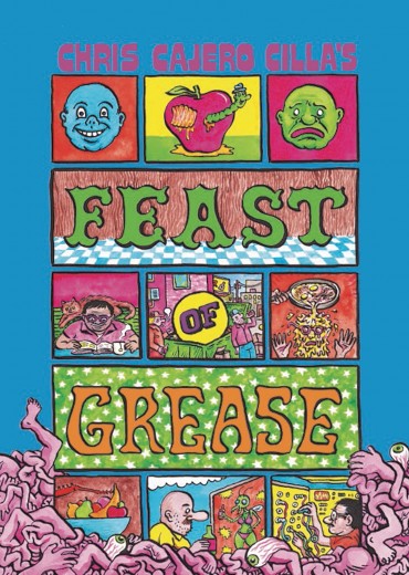 Feast of Grease is the latest collection of psychedelic comix artwork by cult cartoonist Chris Cajero Cilla. Including work from Kramers Ergot, Studygroup Comics, and Vision Quest, gathered together in these pages for an all-you-can-eat album of mind melting comics. Journey from outer space to the dumpster behind a liquor store! Spend time with funny animals, freaky humans, ghosts, dirty cops, and other creatures in a world full of chicken fat & junkyard poetry, cartoon daydreams and nightmares.