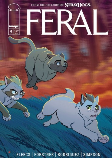 End of Story Arc. More animal horror in this ongoing series from the creators of Stray Dogs! The indoor cats are torn asunder after last issue's shocking revelations! However, they have to keep moving, as they learn the hard way that the outbreak extends far beyond the forest. Where can they go now that nowhere is safe?!? Don't miss the terrifying conclusion to the first arc of this smash-hit comic from the masters of the petsploitation genre! Don't get bit. Don't get scratched. Don't become… feral.