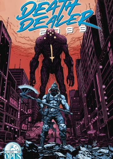 The legend of Frank Frazetta's Death Dealer continues… in 2099! Sword and sorcery meet cybernetics and supercomputers!! Join Andy Belanger (Black Cross, Megadeth) and Tatto Caballero (The Incal, Megadeth) as they explore the next chapter in the saga of the cursed horned helmet, bestowed upon a new warrior in a dark, unforgiving future.
