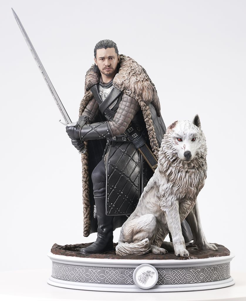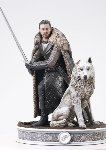 A Diamond Select Toys release! It's an all-new product line from Diamond Select Toys, based on the hit HBO series Game Of Thrones! In this inaugural sculpture, Jon Snow crouches, sword at the ready, as his injured direwolf Ghost looks on. Both are in their Season 8 appearances, and this piece measures 10 inches to the tip of Jon's sword. It comes packaged in a full-color window box. Designed by Nelson X. Asencio, sculpted by Ed Trujillo.
