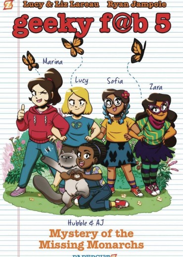 In their next adventure, the Geeky Fab 5 discover a hidden garden filled with Monarch butterflies and honeybees. While the girls are learning in science class that Monarchs and bees are becoming endangered, something threatens their secret butterfly garden behind Earhart. To solve the mystery, Hubble the GF5 mascot (and ever-so-curious cat) discovers a secret that gets him catnapped! In a race against time, the girls must rescue Hubble, save the garden, and solve the mystery of the missing Monarchs.