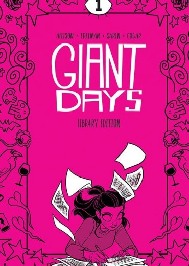 The school year is just beginning at Sheffield University, jam-packed with new classes, new professors, new places to explore…not to mention new clubs, new cliques, and new shenanigans, too. For first years Daisy, Esther, and Susan, they've got new friends on lock, forming a tight bond from their very first days as next-dorm neighbors. But learning to navigate life as brand new (almost) adults isn't as easy as it looks, between old nemeses popping up, academic struggles, and new crushes on the horizon. It's a good thing these three have each other to help survive Hall Balls, bantering lads, and drama vortexes (vortices?)! The Giant Days Library Edition Volume 1, written by John Allison (Wicked Things, Steeple) and illustrated by Lissa Treiman (Minötar) and Max Sarin (Harley Quinn: The Animated Series: The Eat. Bang! Kill Tour) collects the first eight issues of the Eisner Award-winning and Harvey Award-nominated series, along with an issue of the original webcomic and extras, all in a deluxe hardcover.
