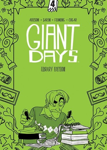 The Holidays are coming and love is in the air at Sheffield University! While back home in Northampton visiting her six sisters and numerous niblings for the holidays, Susan reconnects with McGraw. Too bad he's still dating Emilia…at least for now! Meanwhile, Daisy and bombastic exchange student Ingrid are also testing the waters of first love. Even insufferable Dean Thompson found virtual romance, while Ed agrees to be match-made by Daisy. As the spring semester wears on, the question looms…will Daisy, Esther, and Susan stay housemates for their third year? Or will love tear the dream-team apart, as certain folks want to give living with their paramours a try? The Giant Days Library Edition Volume 4, written by John Allison (Wicked Things, Steeple) and illustrated by Max Sarin (Harley Quinn: The Animated Series: The Eat. Bang! Kill Tour) and Liz Fleming (Steven Universe) collects the next eight issues of the Eisner Award-winning and Harvey Award-nominated series along with the 2016 holiday special, all in a deluxe hardcover. Collects Giant Days #25-32.