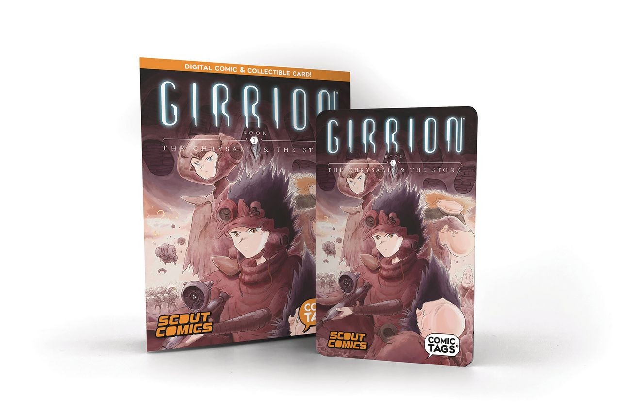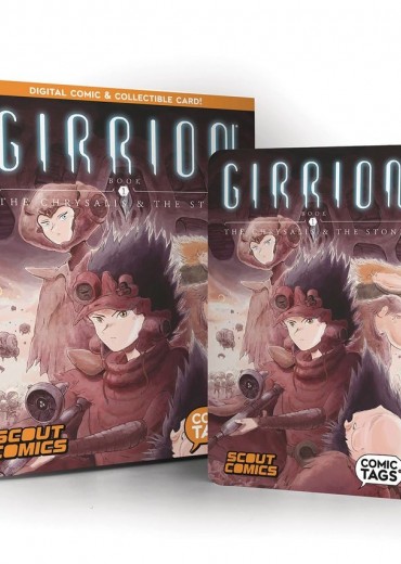 Making digital comics collectible! This plastic collectible card that contains a PDF of the complete Girrion graphic novel! Girrion is a sweeping sci-fi fantasy story of a hero's journey in a distant time and world, in a realm called Gania inhabited by peaceful creatures known as the Gunflins. For centuries they have learned to harness the power of varied and ancient technologies from their violent past. The saga is told through the eyes of Jarra, a poor factory worker who dreams of escaping his world of endless toil, until one day his deepest wish comes true, though not in a way he would have ever wanted, when his city is attacked by a dark entity called the Halodron. He manages to escape the conflict, but only to be thrust into a war of other-worldly magic and weaponry. Collects all 9 issues!