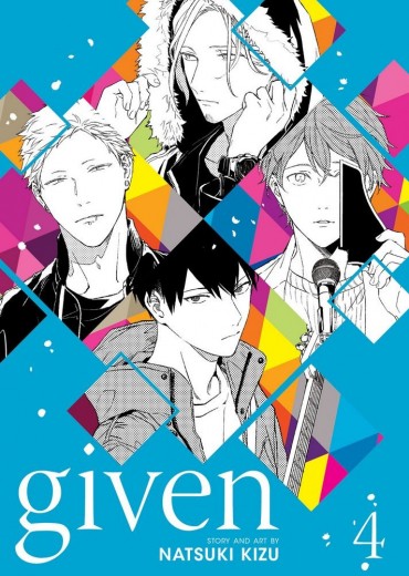 Sometimes a song can save your life. Love of music unites the four members of the band Given: hotheaded guitarist Uenoyama, playboy drummer Akihiko, gentle bassist Haruki, and Mafuyu, a singer gifted with great talent and burdened by past tragedy. Their struggles and conflicts may drive them apart, but their bond to the music-and to each other-always brings them back together again. As the band focuses on preparing for music festival tryouts and creating new songs, Haruki grows more and more intimidated by the talents of younger members Mafuyu and Uenoyama. Worried that he's holding them back, he accepts his ex-girlfriend's request to play in her band. Meanwhile, Akihiko realizes that Haruki has fallen in love with him, setting the stage for a major blowup between them. For readers ages 16 and up.