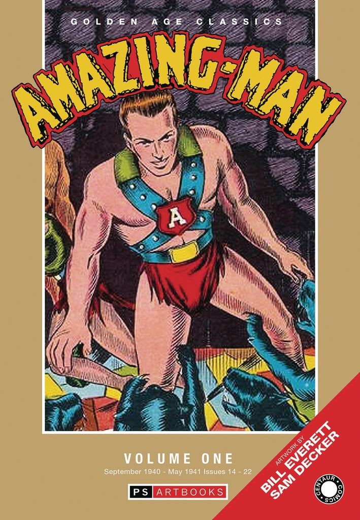 Amazing Man was the second superhero after Superman to have a comic book named after him. Historians credit his creation variously to writer-artist Bill Everett and art director Lloyd Jacquet, founder of The Funnies Inc., although some credit may be due to Grace Everett, who helped with research. In 1914, an orphaned child named John Aman was chosen by the Tibetan Council of Seven and trained to be a superman, both in mental and physical perfection. His powers include super strength, invulnerability and the ability to make himself disappear in a cloud of green vapour. When he turned twenty-five, after his final tests, he is sent into the world to combat crime and injustice, returning to America to become the heroic Amazing Man. Collects Amazing Man #5-19 (September 1939-January 1941).