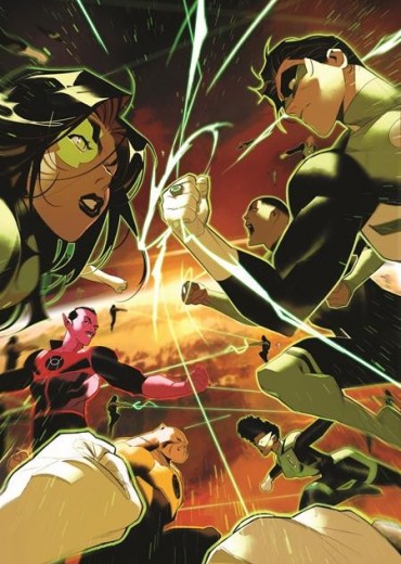 'THE BATTLE OF OA BEGINS! Hal Jordan and John Stewart mount a defense against the United Planets and the newly transformed Lord Premier Thaaros, all while Star Sapphire faces an unlikely creature from her past!'
